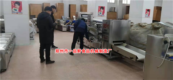 山東客戶在2018年的的時候,購買過一品鮮批發用燴面機設備。 經過幾年的經營,每天的生產量越來越大。原來的機器已經跟不上生產需求,需要的人工成本也隨著增加,生產時間也相應的增多不少。 在得知一品鮮這兩年研發的全自動無需人工大型揉壓機和自動疊片燴面機等高效設備后。 立即來到一品鮮工廠進行實地考察學習。