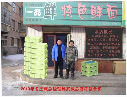 經營實況:早在2008年8月,記者曾親自到一品鮮黑龍江大慶店進行過實地采訪。李萬軍夫婦靠著誠信經營,不但用刀削面和拉面兩種產品順利地占領了當地市場,而且經過幾年的發展,規模也有了相當的突破。夫妻倆從原本一天加工四五袋面粉,發展到現在每天加工十五六袋面粉,每袋面粉凈利潤50元。天天產銷量穩定,幾乎大慶市的菜店、副食店、超市,均有代銷一品鮮面條的經銷點。
